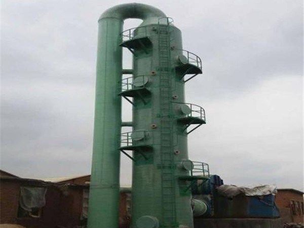 玻璃钢脱硫塔产品优点 1.除尘脱硫器采用分节组装,具有占地面积小、运输、安装方便的特点。 2.本产品采用国内先进的复合材料和耐高温玻璃钢树脂,使其增加了耐磨、耐高温程度,大大延长了使用寿命。 3.本产品是一种侧进顶出的冲击式除尘脱硫器,使烟气直接冲击水面,节水并减少污染,操作维修方便,运行费用低,脱水效果好,是一种经济实用的湿式除尘脱硫器。