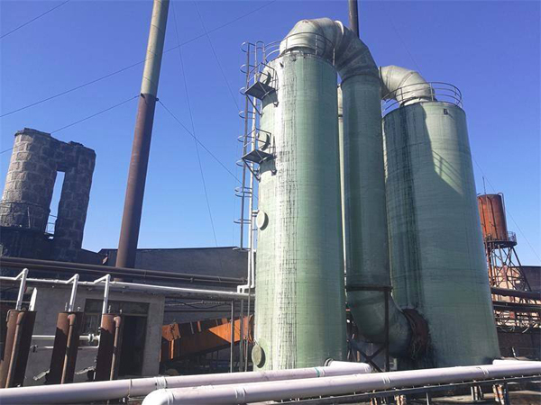 玻璃钢脱硫塔产品优点 1.除尘脱硫器采用分节组装,具有占地面积小、运输、安装方便的特点。 2.本产品采用国内先进的复合材料和耐高温玻璃钢树脂,使其增加了耐磨、耐高温程度,大大延长了使用寿命。 3.本产品是一种侧进顶出的冲击式除尘脱硫器,使烟气直接冲击水面,节水并减少污染,操作维修方便,运行费用低,脱水效果好,是一种经济实用的湿式除尘脱硫器。